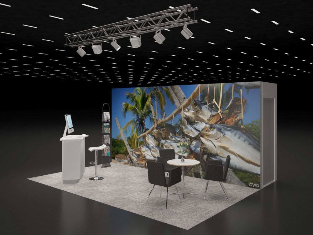 We have a number of turn-key stand packages, as shown below. Naturally, we can also customise a stand to your exact requirements. Just contact us and we will be happy to help you. Please note that for a turn-key stand you will also be charged a basic fee and exhibitor’s insurance.
